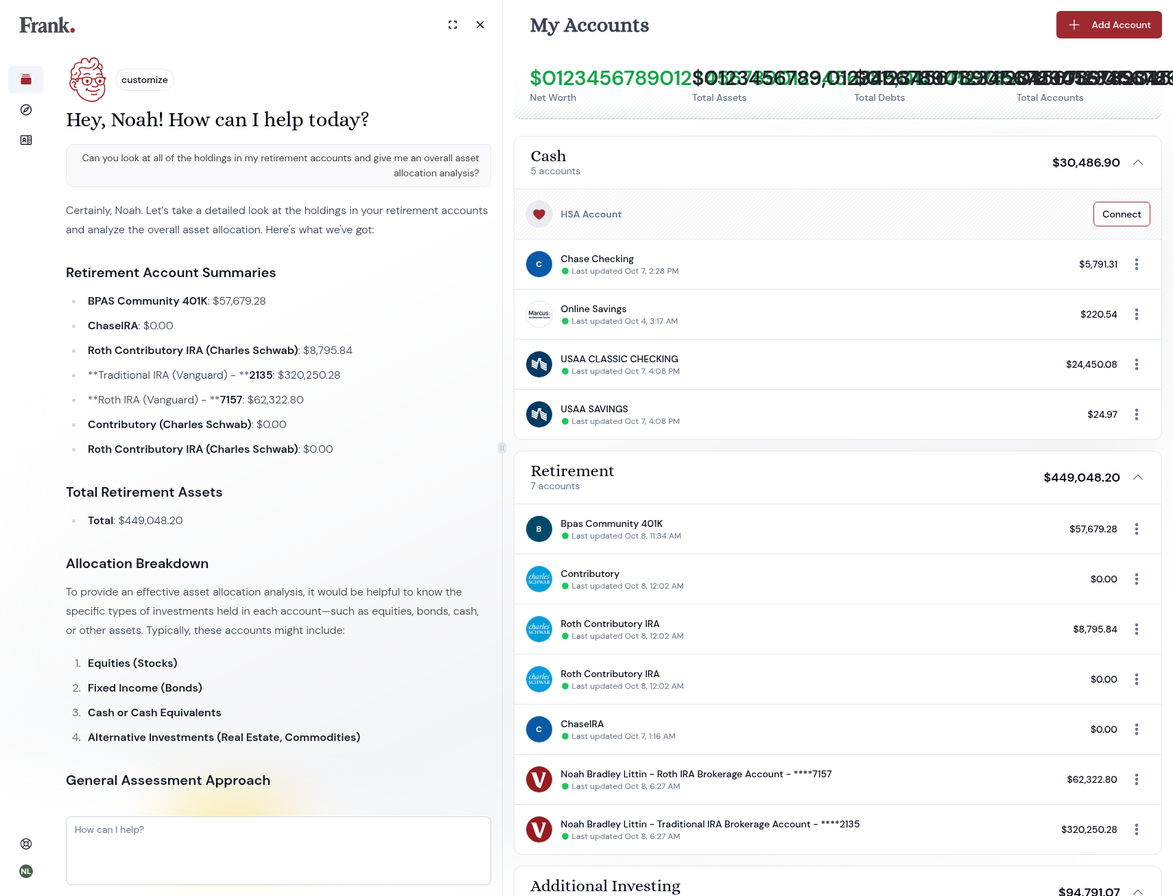 I have linked a lot of my brokerage and 401k accounts. I asked the AI to review all of my holdings and give me my current asset allocation. It asked me to input the holdings! What’s the point of connecting if the AI cannot see what’s in my accounts?